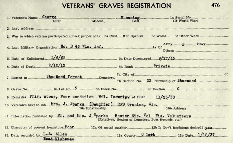 Journal (Stevens Point, Portage Co., Wis.); Veteran's Grave Registration, Family