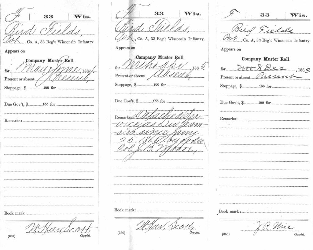 August,1862.Private Co. A-33rd Regiment, WI Volunteers. Discharged at Vicksburg,