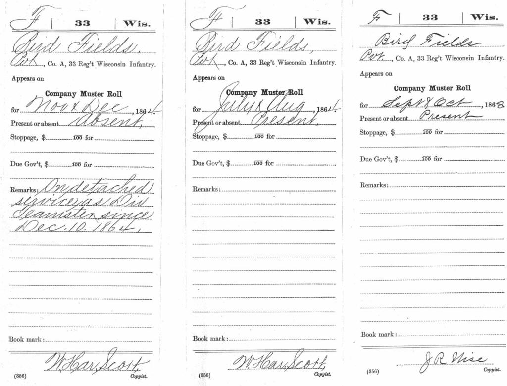 33rd WI along side his younger brother, Alfred. Bird died Aug. 30 or 31st, 1904 and is buried in the
