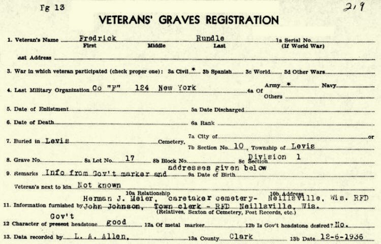Rundle, Frederick.- It is shown by the official Records that Frederick Rundle,