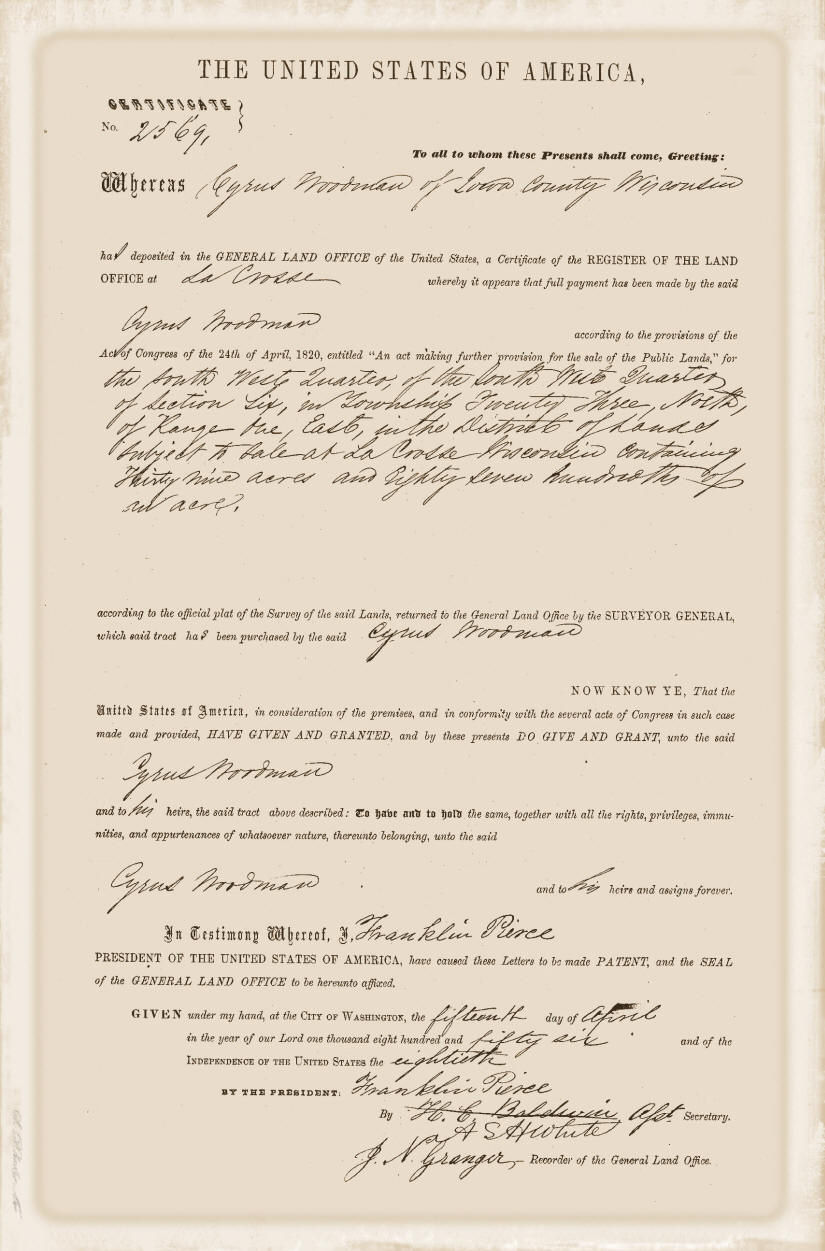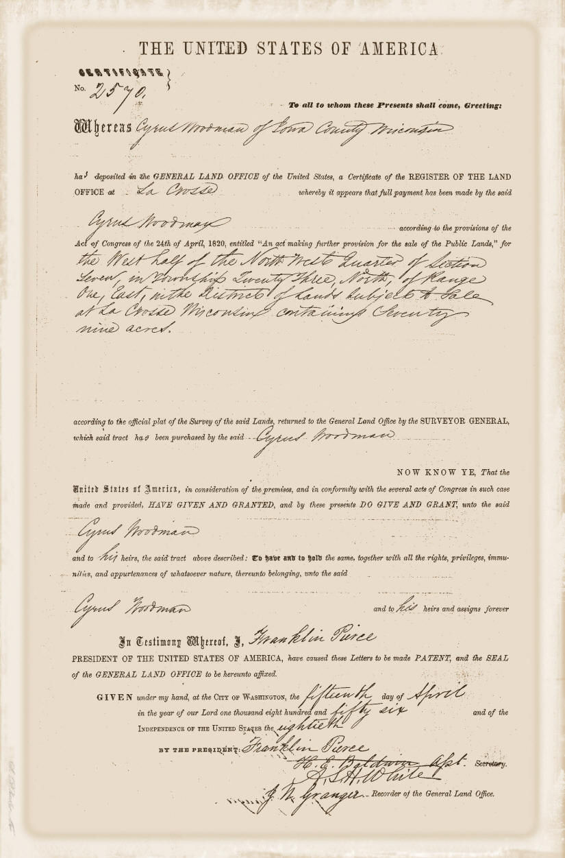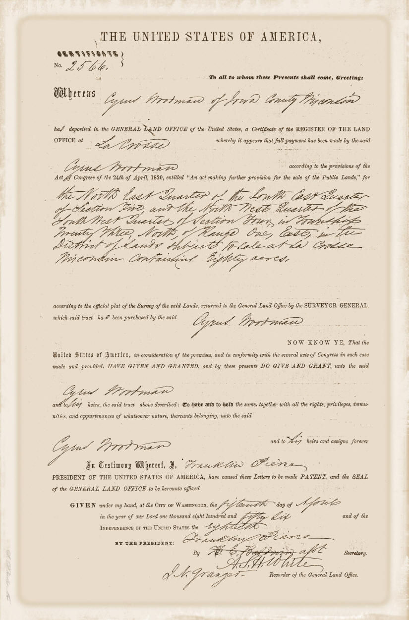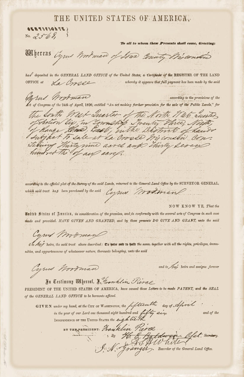 speculation of land, both farmland and timberland. Being the first member of the Woodman family to collect