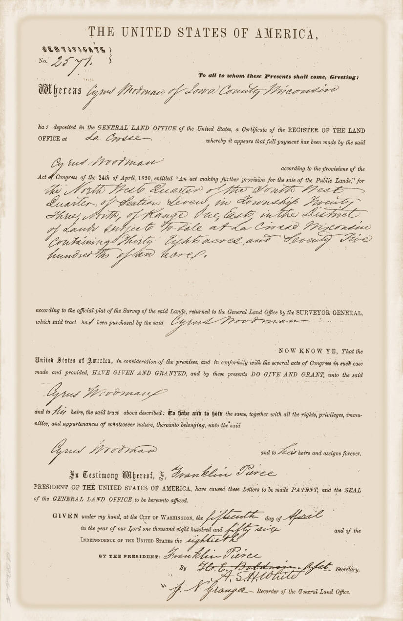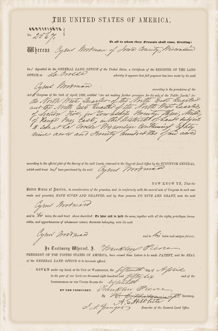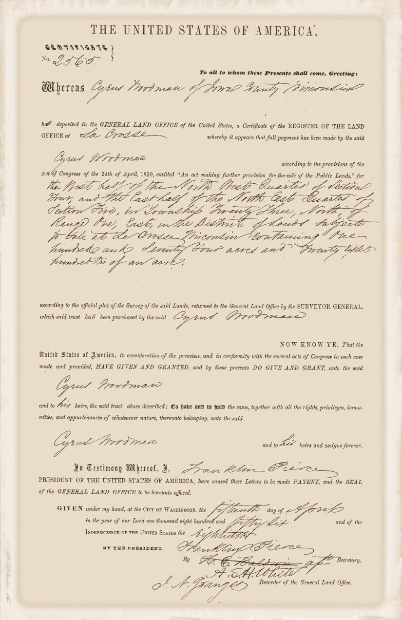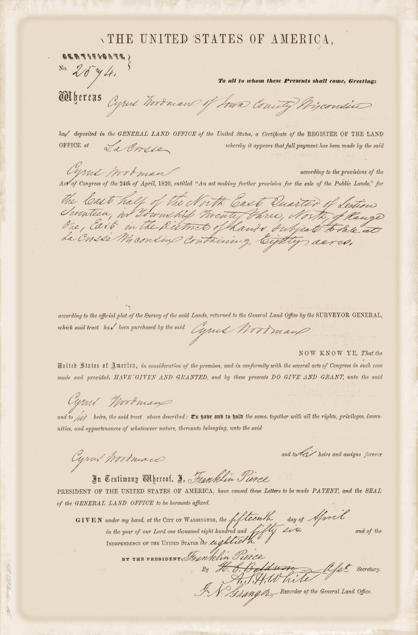 speculation of land, both farmland and timberland. Being the first member of the Woodman family to collect