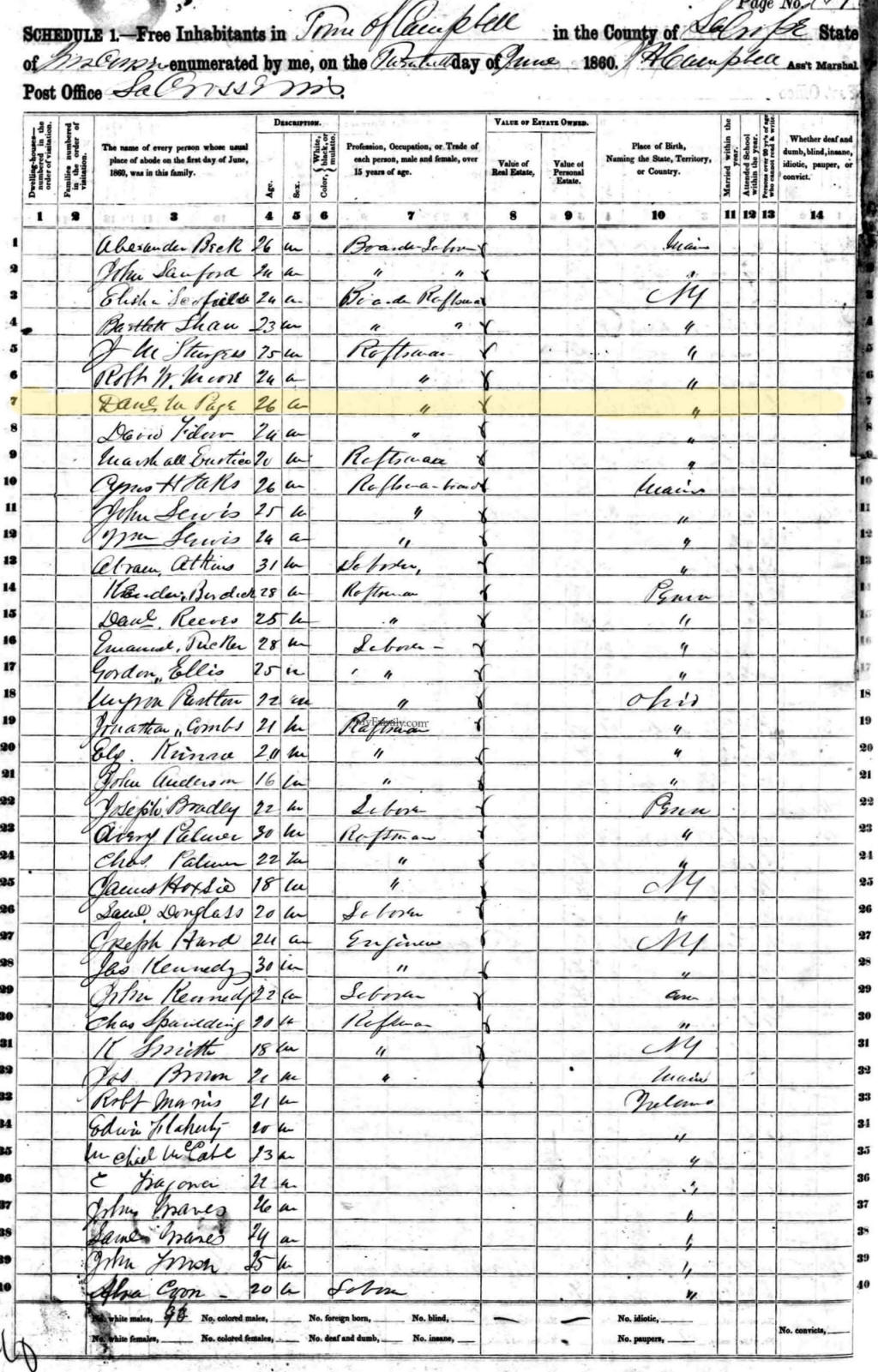 David Page, blacksmith, Eau Claire, was born in St. Herman, Province of Quebec,