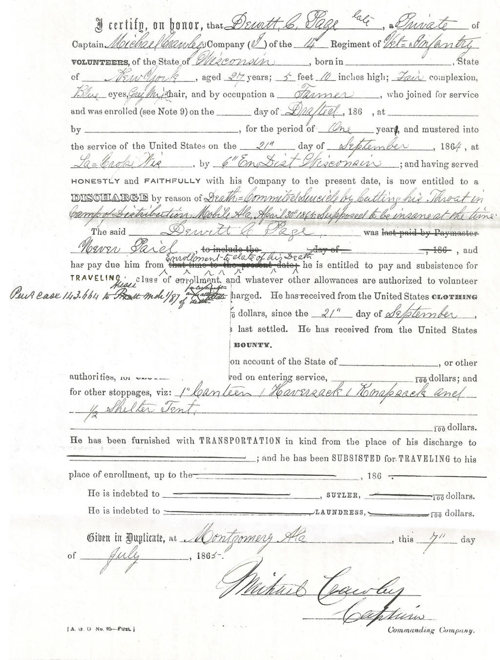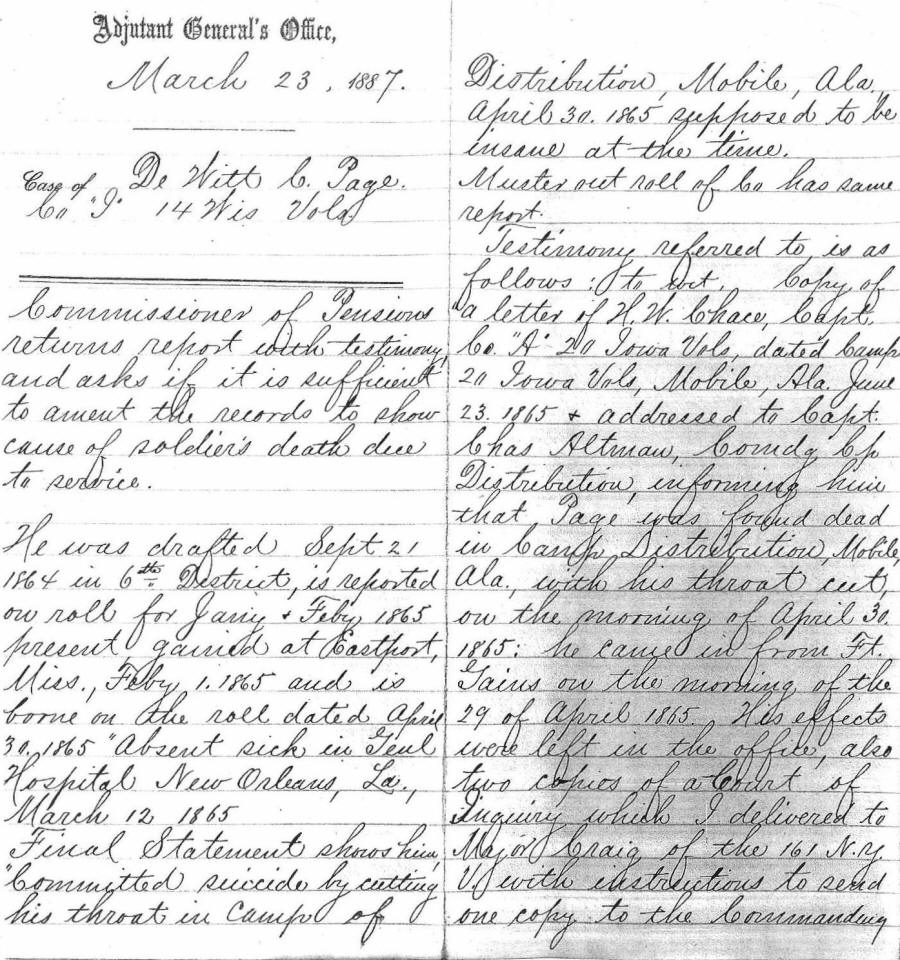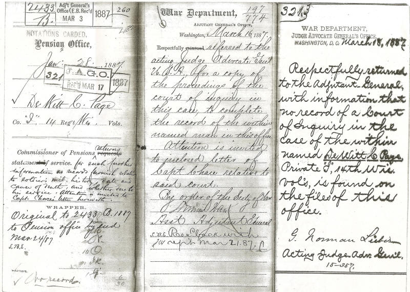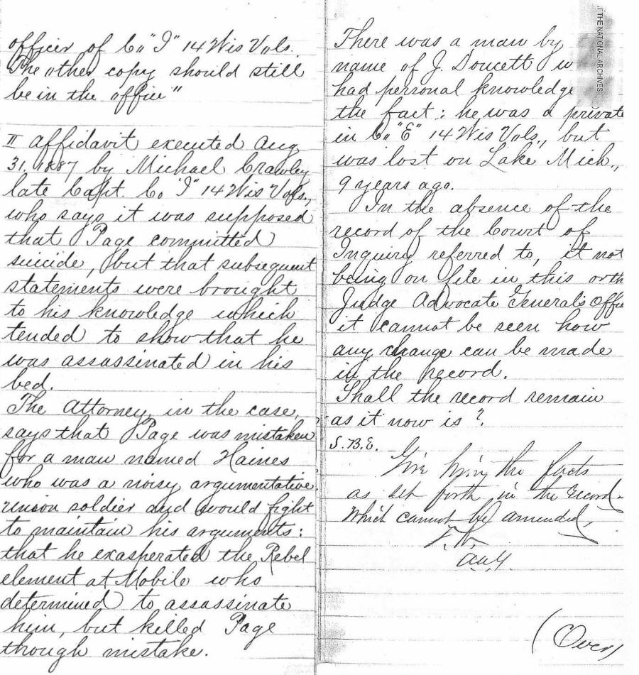 late Captain of Co. "I", 14th Wis. Vols., who said it was supposed that Page
