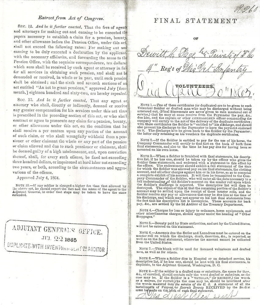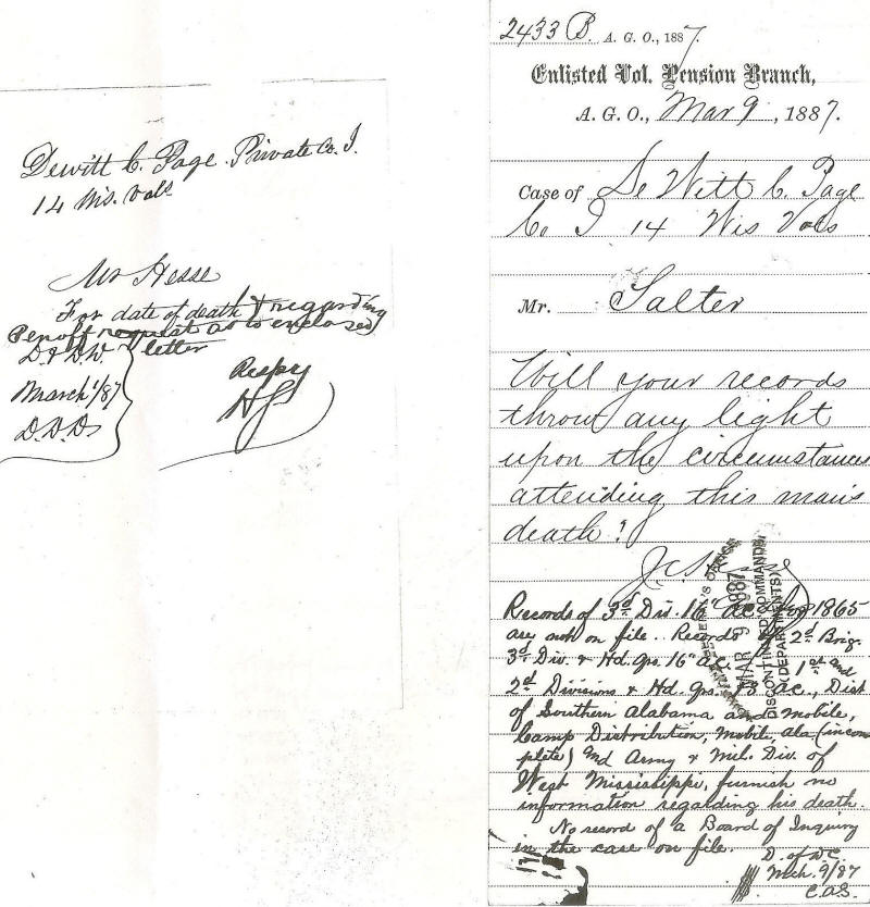 of DeWitt Page's death. His last wages were never paid. His