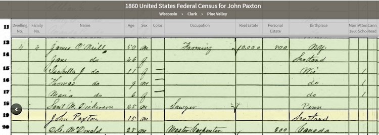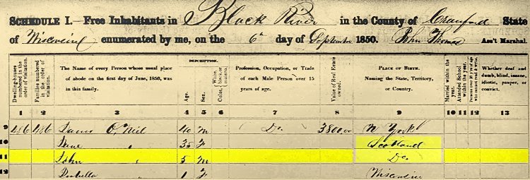 Isabella O'Neil 1850 Female 1 White 1849 Wisconsin