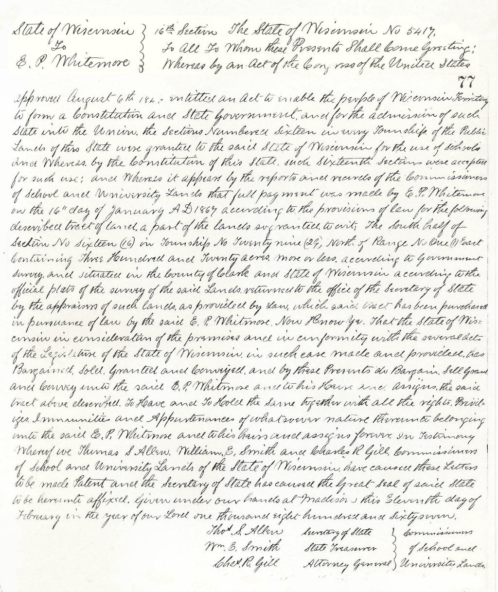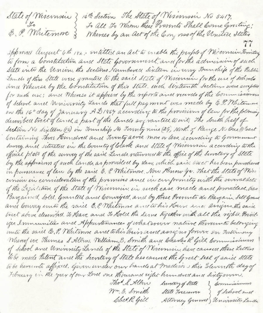 Land Record for School Use (Section 16, Twp. 29, Range 1E)