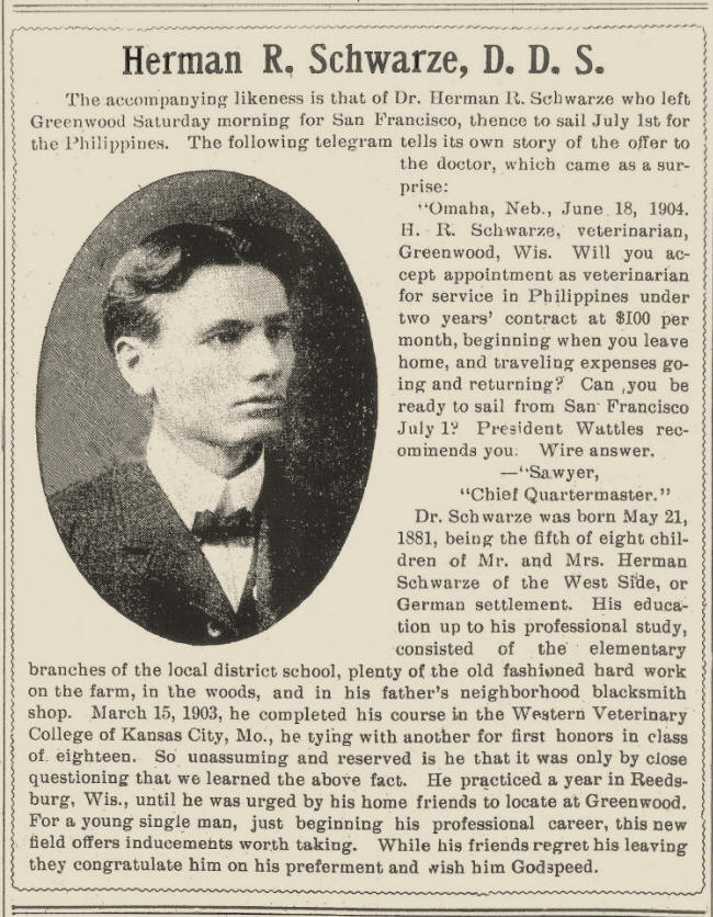 son of Mr. and Mrs. H.M. Schwarze of Greenwood, was born in the Town of Warner,