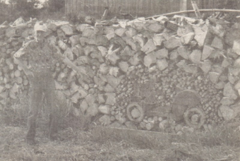 Bruce Spiegel, 86, created an antique automobile in a woodpile for her to view. "It didn’t take me very long," Spiegel explained.
