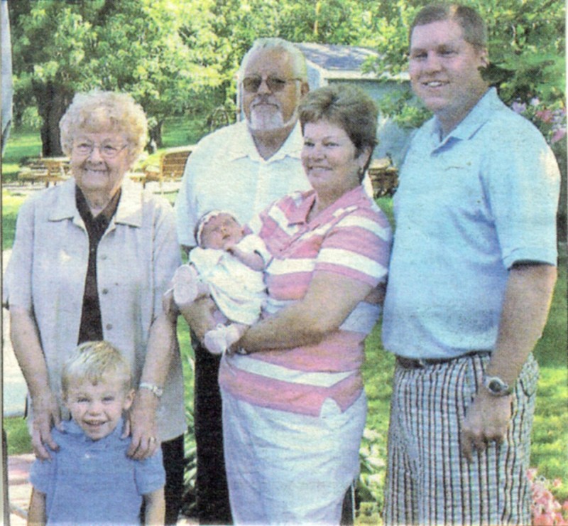 A 90th birthday party for Doris (Eisentraut) Braatz was held at Snyder Park in August (2009). Many friends and family members attended. Doris has 10 grandchildren, 16 great-grandchildren and five great-great-grandchildren. There are three sets of five generations. Pictured here are two of them.