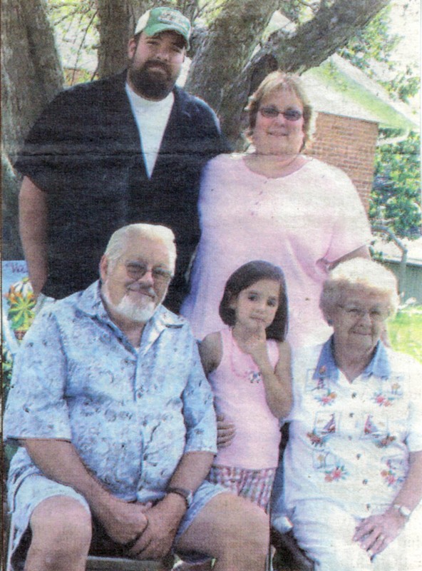 Above, (seated l-r) are Arne Eisentraut, Doris’ great-great-granddaughter, Genesis Cernik, Doris Braatz, (Standing l-r) great-grandson, Jason Cernik, and granddaughter, Debbie Tlusty