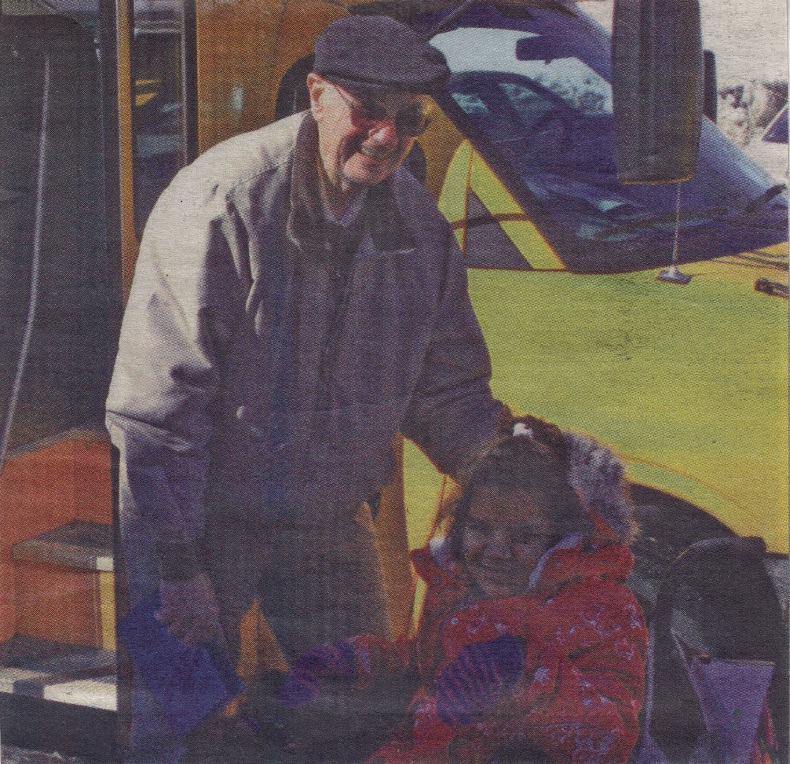 Neillsville School District bus driver Ken Van Dam (l) poses with sixth-grade passenger Nykya Smith outside his bus on Friday, March 25, during Van Dam’s last day driving bus after nearly 40 years with the district. Van Dam, who is retiring, was a teacher and administrator for 31 years at Neillsville before becoming a bus driver for the last six years. (Peter Spicer/Clark County Press photo)