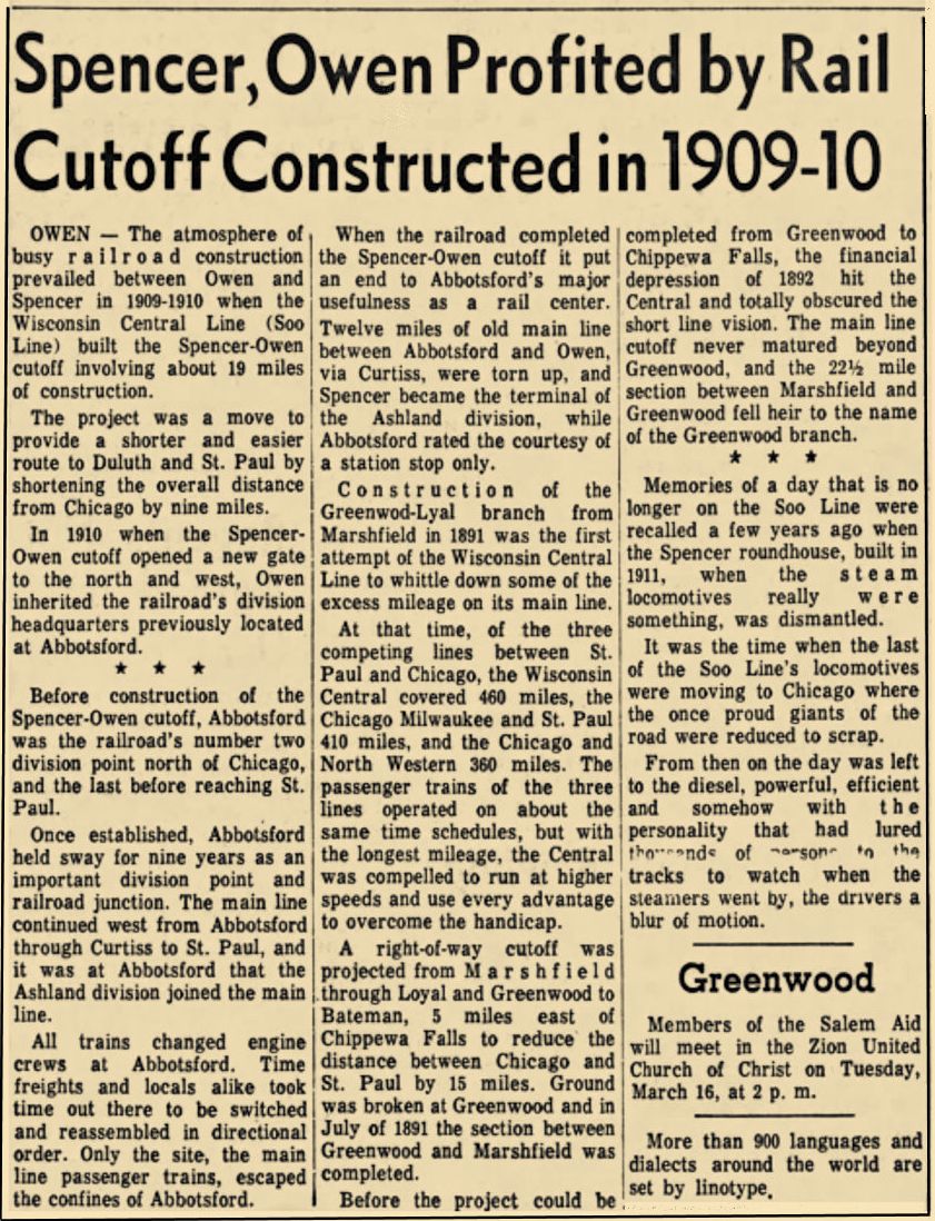 News: Owen – Wisconsin Central Soo Line RR Impact (1909