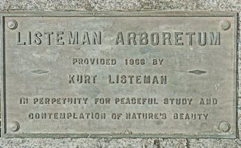 At the CTH 10 entrance, a boulder with a plaque reads, “Listeman Arboretum