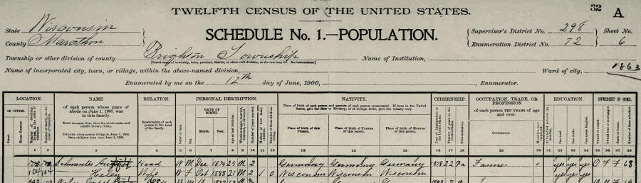 1900 Federal Census, Brighton, Marathon, Wisconsin