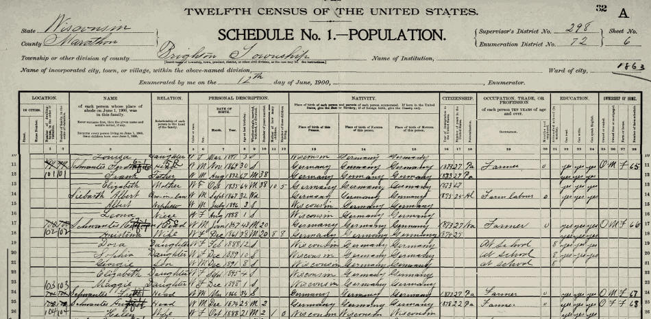 1900 Federal Census, Brighton township, Marathon, Wisconsin