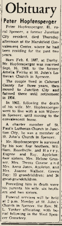 Obit: Hopfensperger, Peter J. (1887 - 1968)