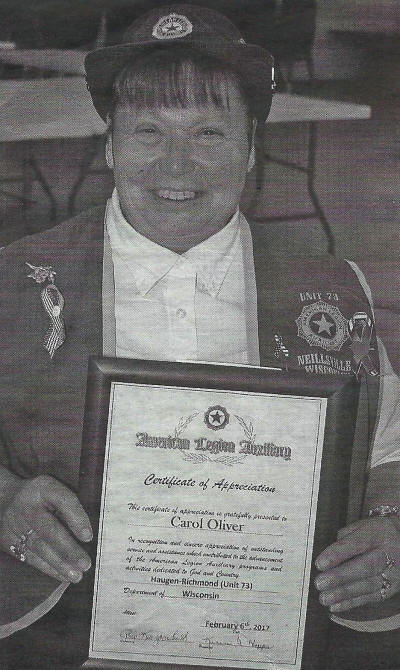 Appreciation she received March 6 at Neillsville American Legion Post 73. Oliver