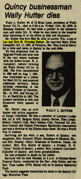 Obit: Hutter, Wallace "Wally" L. (1918 - 1978)