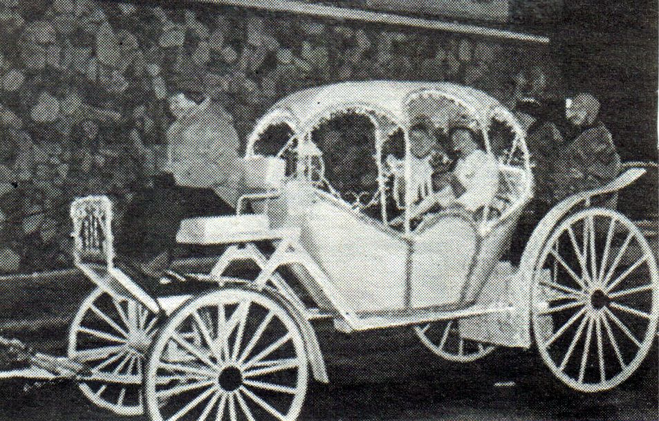 an elegant handcrafted carriage. Over 40 floats and 250 costumed characters will