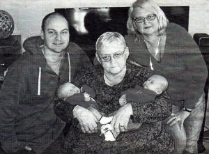 right) are Matt Hagen, father of Shafer, MN; Erdine Payne, great-grandmother,