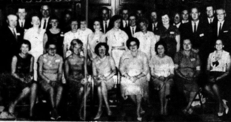 At 5:30 that afternoon the group enjoyed a tour of the old and new high school buildings prior to sitting down to a banquet program held at eight o'clock in the main dining room of the Woodland Hotel.