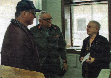 Jeanette Steiner (right) chats with former trustee Roger Nitschke (Left) and