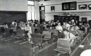 The students raised the flag (48 stars for 48 states in 1939) and received their study assignments for the day, which included reading, writing, penmanship, geography and art.