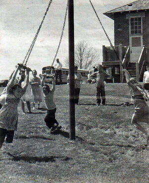 Part of the schedule at Reed School includes recess and exercise time. These Neillsville students take a turn on the Giant Stride, the most popular outdoor activity. (Photo by Todd Schmidt/Clark County Press)