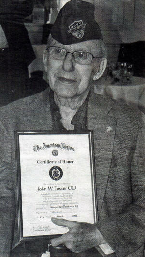 The Neillsville American Legion Post 73 recently honored John Foster, OD, 89, of