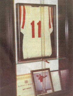 with engravings of his illustrious name. The case full of athletic memorabilia