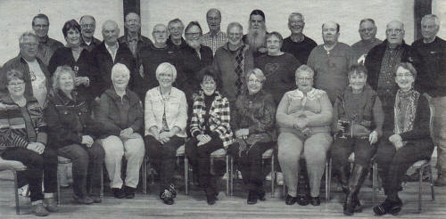 Attending were: (Row 1, l-r) Darlene (Williams) Trogner, Oregon; JoAnne (Baker) Flynn, Sturgeon Lake, MN, and Clinton, AR; Mary (Briggs) Harcey, Stillwater, MN; Luann (Tews) Haunschild, Hudson; Linda (Diehl) Risbrudt), Mission Viejo, CA; JoAnn (Gross) Blum, Neillsville; Patti (Heinzen) Lewis, Stevensville, MT; Angie (Kessler) Larsen, Neillsville; Katherine (Manz) Cowett, Pawtucket, RI; (Row 2) Lee Kurasz, Neillsville; Lois “Susie” Steinhilber, Oshkosh; Dan Rayburn, Pittsville; Bob Armitage, Stillwater, MN; Boyd Meyer, Scales Mound, IL; Donald Ruedy, Sarona; Darlene (Krultz) Zukowski, Owen; Jim Ziegler, Marshfield; Arnold Strangfeld, Nekoosa; (Row 3) Duane Kissling, So. Milwaukee; Dennis Gall, Grafton; John Flynn, Sturgeon Lake, MN, and Clinton, AR; Allen Cummings, Sun Prairie; Bill Simek, St. Paul, MN; Roy Strebing, Rockford, IL; Craig Blum, Neillsville; Chuck Glassbrenner, Neillsville; Albert Mazola, Greenfield. (Contributed photo)