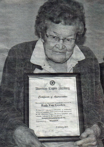 Ruth Van Gorden was recently honored for her many years as a member of the