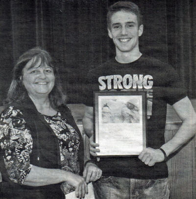 Eagle Scout Dominic Kuhn of Neillsville receives a commemorative plaque from