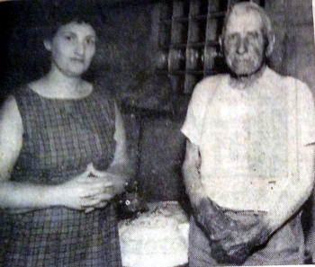 The above picture show Ernest Thieme, of the Senior Citizen's Home at Greenwood (Clark Co., Wis.), celebrating his 90th birthday with a fifth generation cousin, Mrs. Ed Franz, also of Greenwood.