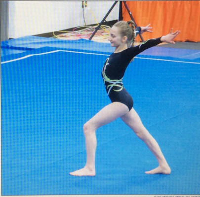 Rachel Lindner performs her floor routine at a recent AAU meet. After