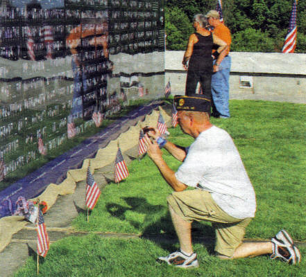 A veteran snaps a photo at The Highground July 19 of Wisconsin service men