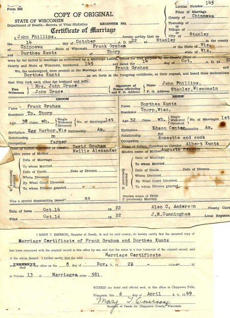 Oct 24, 1922 Married Dorothea Graham He was 38, she was 32.
