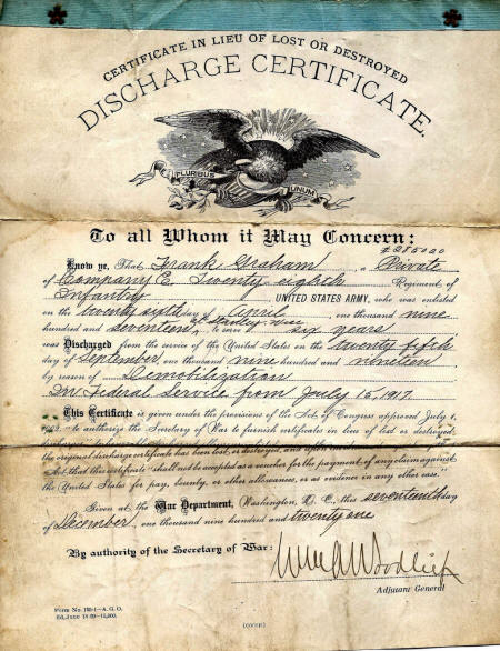 My grandfather, Frank Mortimer Graham was in WWI. He was in the army from