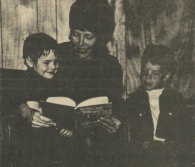 Mrs. Allen Schoonover enjoys reading a book to two of her children, Viki and