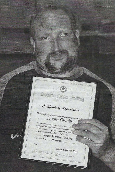 Jeremy Cronin was honored by the Ladies Auxiliary as a special volunteer. His