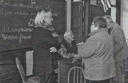 chat with visitors at historic Reed School near Neillsville Oct. 29, 2017,