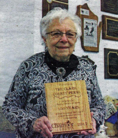 Dee Zimmerman, who’s worked with The Clark County Press for 49 years, displayed