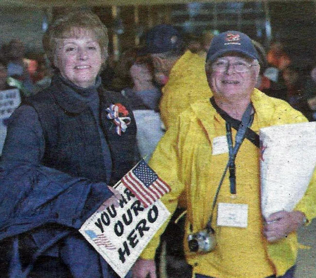 veterans were greeted by a large crowd of supporters. Above, Roger Mielke of