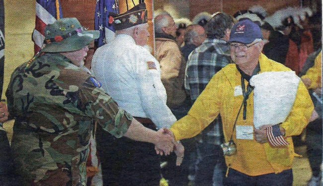 Loyal shakes hands with a fellow veteran. (Submitted Photo)