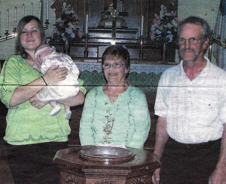 Four Generations: (l-r) Lacey Murphy (mom) holding Layden Tlusty, Rosie Murphy (great-grandma) and David Murphy (grandpa).