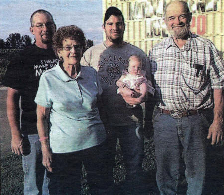 Five Generations: (l-r) Mark Tlusty Jr, (grandpa), Frenchie Tlusty (great-great-grandma, Shawn Tlusty (dad) holding Layden Tlusty and Mark Tlusty Sr. (great-grandpa). (Contributed photos)