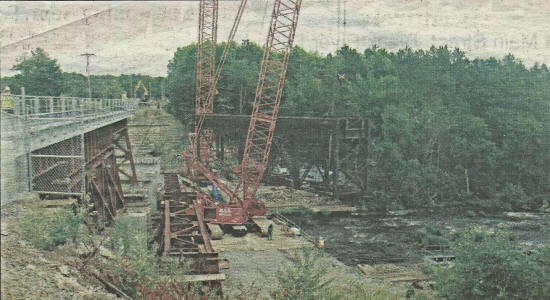 crane) as it was moved out Tuesday and the new bridge put in its place. The old