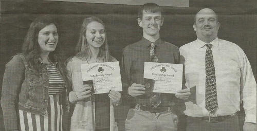 Zach Zimmerman and Sydney Schultz from Cloverbelt-Conference member school Loyal were this year’s recipients of the Scholarship Award. Each year the Cloverbelt Conference recognizes two seniors from each school for their academic accomplishments. The two students are pictured with their honored teachers, financial literacy teacher Jessica Zarnke and science teacher and athletic director Michael Lambrecht. Submitted photo