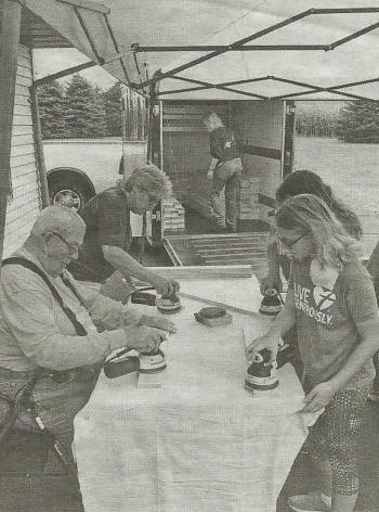 At a work-day earlier this year, Aldonna Miller and Ellen Stanley dip headboards